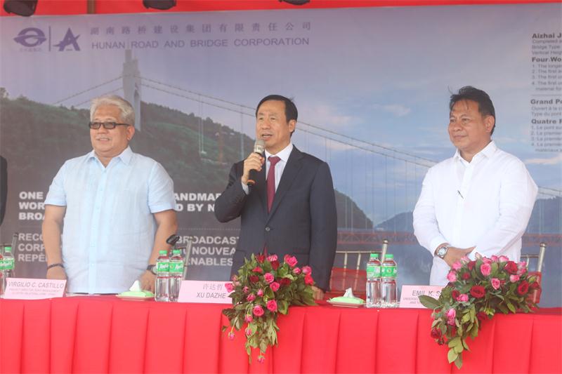 10月15日,許達(dá)哲率代表團(tuán)在楊宏偉等人陪同下,專程赴塔拉克省出席了我司菲律賓中央?yún)嗡胃咚俾?lián)線塔拉克段項目瀝青面層工程開工儀式,宣布面層工程開工,并看望慰問了我司施工人員。一同出席的還有菲律賓公共工程與公路部副部長撒達(dá)因。