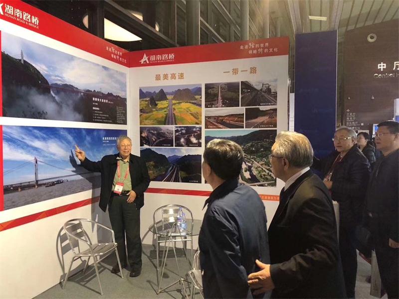 湖南路橋展臺通過現(xiàn)場豐富的視頻介紹,背景墻的圖片展示,精彩的文字說明,集中向參會人員展示了集團(tuán)光輝的發(fā)展歷程,形象地介紹了集團(tuán)的宏偉發(fā)展規(guī)劃以及最新成果,可以稱得上是會議的熱門展廳。展廳吸引了中國工程院院士王景全等眾多專家和領(lǐng)導(dǎo)駐足,王院士還興致勃勃地向原交通部部領(lǐng)導(dǎo)李盛霖、胡希捷等熱情介紹了矮寨大橋和洞庭湖大橋兩大公司精品工程。