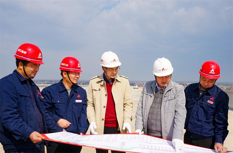 集團(tuán)黨委書記、董事長楊宏偉(中),黨委副書記、總經(jīng)理龔智輝(右二)等調(diào)研南益高速南洞庭大橋項(xiàng)目建設(shè)。對標(biāo)管理補(bǔ)短板降本增效創(chuàng)優(yōu)勢