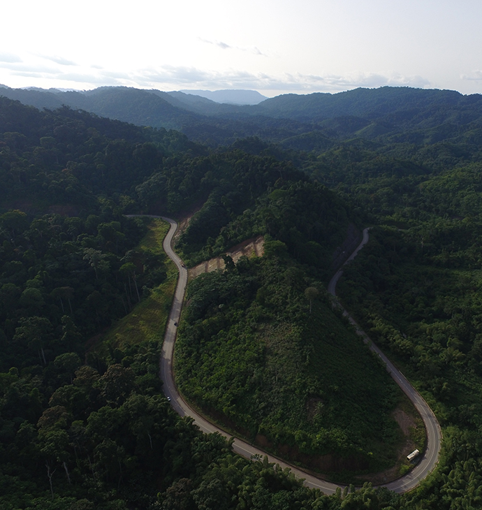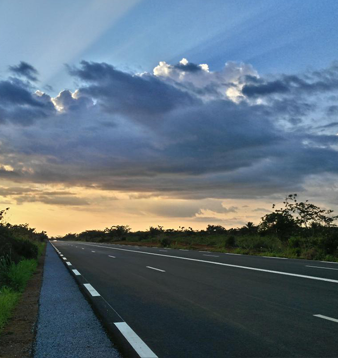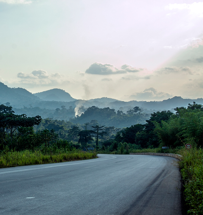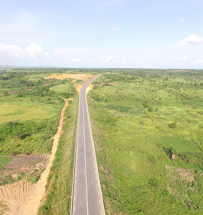 剛果(布)國家1號公路,南起該國經(jīng)濟(jì)中心黑角,北至首都布拉柴維爾,全長近600公里,我司作為專業(yè)分包商,包攬了三分之一的工程量,承擔(dān)起穿越馬永貝原始森林施工難度最大的一段。